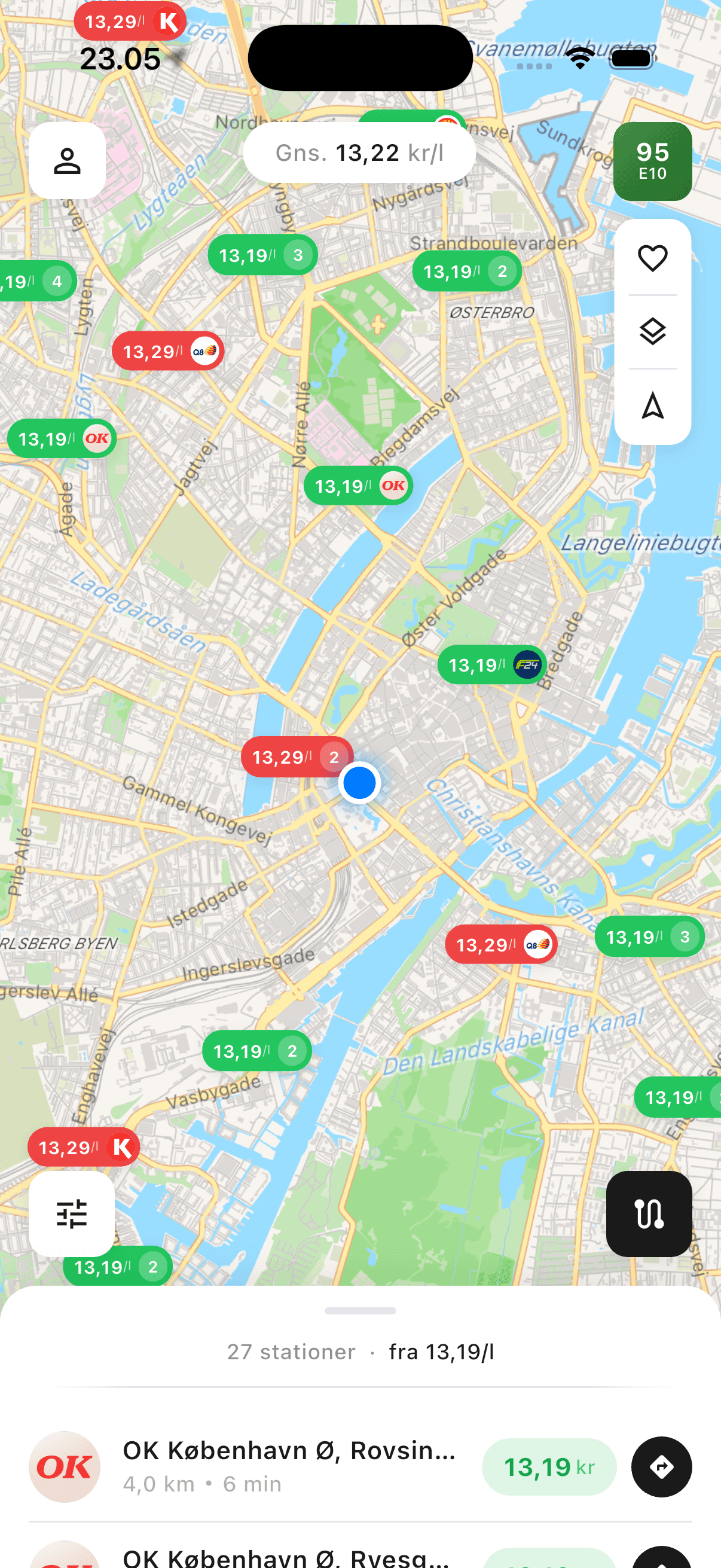 Live priser fra 2.000+ stationer i Danmark